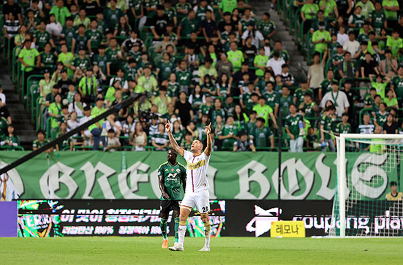 티아고가 리그 14호골을 터뜨렸다. 대전하나시티즌은 전북 원정에서 승점 1점을 챙겼다.대전하나시티즌은 25일 오후 7시 30분 전주월드컵경기장에서 열린 ‘하나원큐 K리그1 2023’ 28라운드에서 전북현대와 1-1무승부를 거뒀다. 승점 1점을 획득한 대전은 리그 7위(승점 3