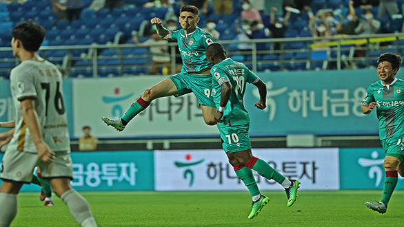 대전하나시티즌이 6경기 만의 승리와 함께 홈 20경기 무패 신기록을 달성했다. 대전하나시티즌은 5일 오후 7시 30분 대전월드컵경기장에서 열린 ‘하나원큐 K리그2 2022’ 25라운드에서 안산 그리너스에 2-0 승리를 거뒀다. 이로써 대전은 승점 41점으로 2위를 유지했