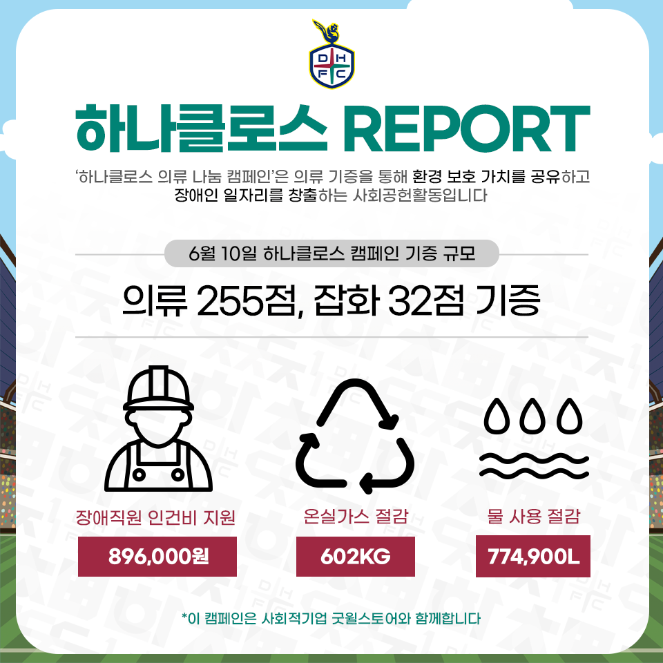 대전하나시티즌이 굿윌스토어와 함께'하나클로스 의류 나눔 캠페인'을 진행합니다.