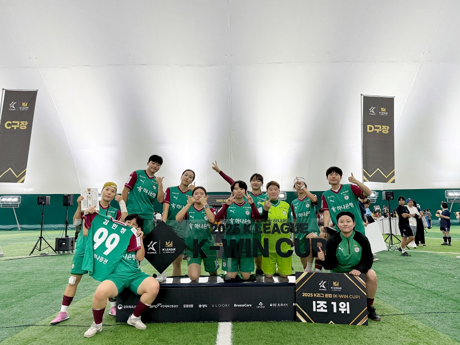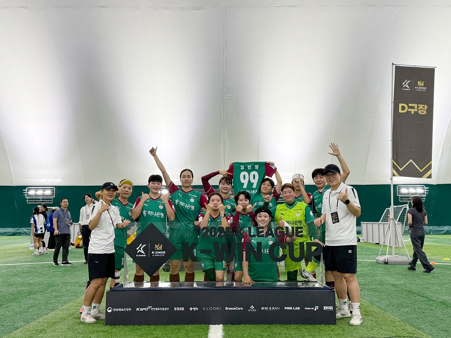 대전하나시티즌 퀸컵 선수단이 지난 9월, 춘천 송암스포츠타운 에어돔에서 개최된 2025 K리그 퀸컵 (K-WIN CUP)에 참가하여 조별 예선 I조 1위, 종합 순위 4위를 기록하였습니다.