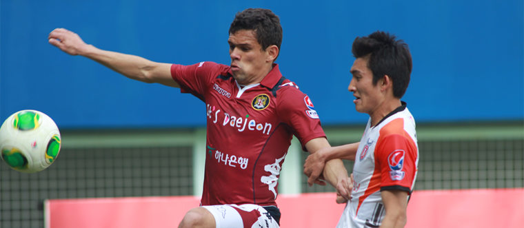 대전은 지난 수요일 펼쳐진 대구와의 경기에서 1 : 3으로 패했다. 대전의 무기인 빠른 역습이 대구 수비에 막혀 초반부터 고전했고, 전반 23분에는 대구 송창호에게 선제골을 내주고 말았다. 그러나 실점 이후 주앙파울로와 플라타의 공격력이 살아나며 분위기가 대전 쪽으로 기울었고, 전반 35분 김태연이 동점골을 성공시키며 1 : 1로 전반전이 마무리되었다. 대전은 후반전 시작과 동시에 적극적인 공격으로 역전골을 노렸다. 그러나 빠른 발을 앞세운 대구의 측면 공격을 제대로 막아내지 못하며 황일수에게 실점하고, 얼마 지나지 않아 김병석이 퇴장당하면서 수적으로도 불리해졌다. 후반 41분 교체투입된 대구 한승엽에게 한 골을 더 내주면서 경기는 1 : 3 으로 종료되었다.
