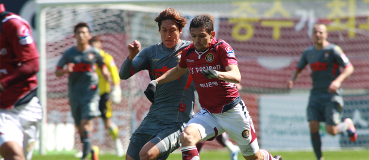 대전은 지난 토요일 대구 원정경기에서 1 : 1로 비겼다. 이날 경기는 양 팀에서 각각 16개의 슈팅이 나온 치열한 경기였다. 초반부터 대구의 공격이 거셌다. 그리고 마침내 대구는 전반 28분 아사모아가 득점하며 분위기를 가져갔다. 그러나 대전의 반격도 만만치 않았다. 아리아스 - 플라타 - 주앙파울로 세 외국인 선수를 중심으로 계속해서 공세를 펼쳤다. 그리고 결국 후반 36분 주앙파울로가 대구 수비수 두 명을 제치고 동점골을 성공시켰다. 이후 대전은 마지막까지 공격의 고삐를 늦추지 않았지만 아쉽게도 더 이상의 득점은 나오지 않았다.