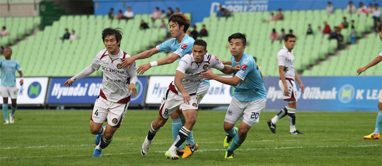지난 제주전 승리는 대전 선수들의 끈기와 투혼이 빚어낸 성과였다. 경기 초반 제주의 공세가 거셌다. 하지만 대전 선수들은 제주의 공격을 끈끈하게 막아내며 틈틈이 역습을 시도했다. 후반전이 시작되자마자 대전에게 큰 위기가 찾아왔다. 제주 마라냥의 연이은 슈팅이 골대를 맞은 데 이어 제주에게 페널티킥을 허용하고 만 것. 그러나 골키퍼 김선규가 페널티킥을 막으면서 경기 분위기는 오히려 대전 쪽으로 바뀌었다. 대전 공격진이 연이은 슈팅으로 제주의 골문을 노렸고, 마침내 후반 34분 주앙파울로의 슈팅이 제주 황도연의 몸을 맞고 골대 안으로 들어갔다. 이 골은 그대로 결승골이 되어 대전에게 오랜만의 승리를 가져다주었다.