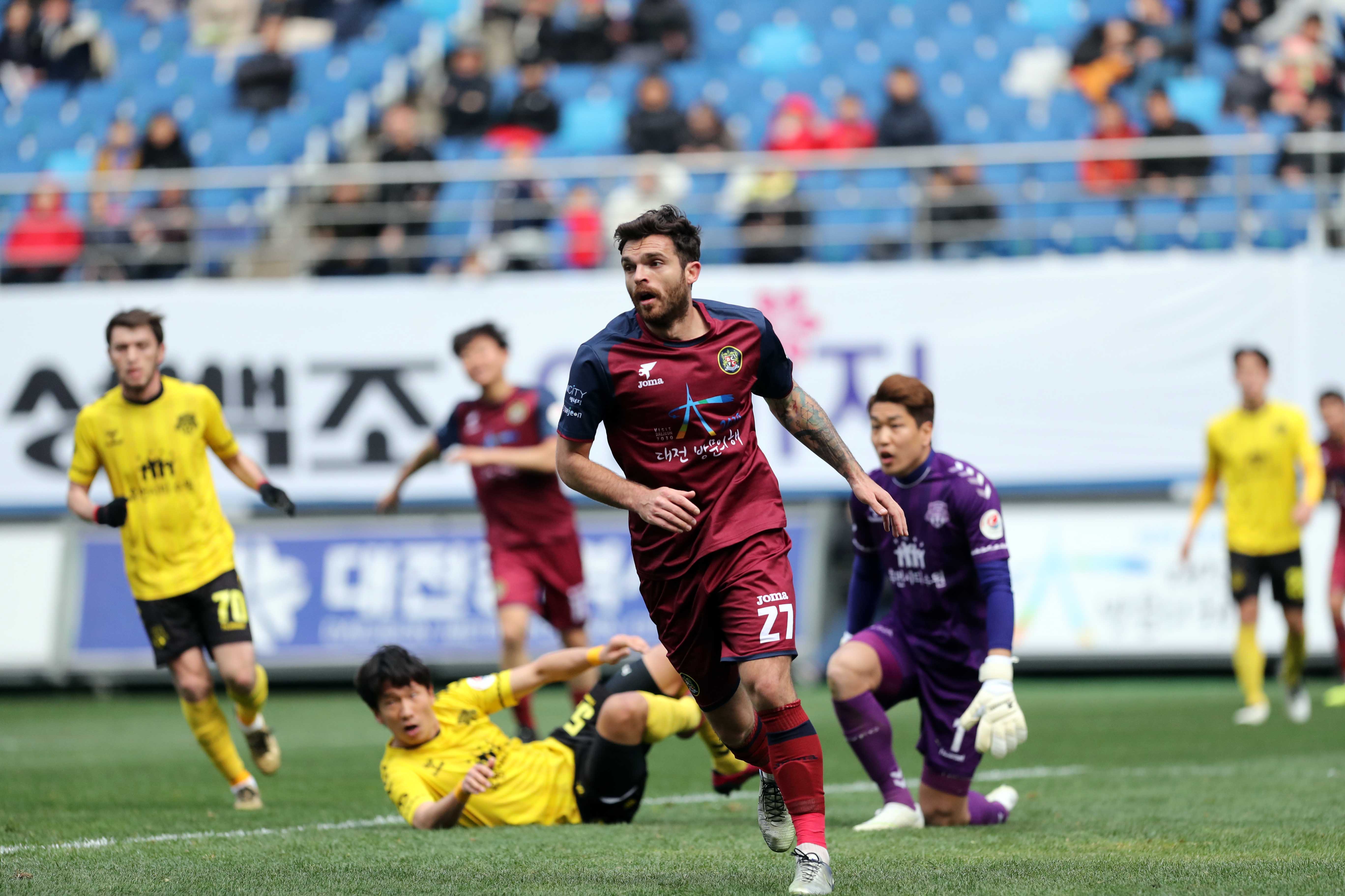 대전의 초반 부침이 이어지고 있다. 지난달 31일 열린 수원FC와 홈경기에서 0-2로 패하며 FA컵 포함 3경기 연속 무승의 늪에 빠졌다. 3경기 모두 대전의 홈에서 치러졌다는 점에서 뼈아픈 결과였다. 승점 7점을 유지하며 광주FC(승점 10)와 선두 경쟁에서도 잠시 뒤처졌다.