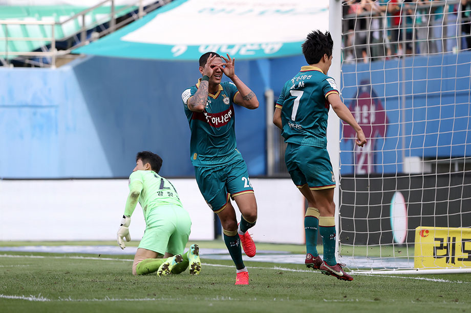 대전은 지난 라운드, 홈에서 수원삼성에 완승을 거뒀다. 당시 대전은 전반 14분 만에 선제골을 터뜨리며 리드를 잡았다. 주세종의 정확한 로빙 패스를 받은 서영재가 문전으로 침투하면서 슈팅까지 마무리했다. 공은 상대 골키퍼에게 막혔지만 김인균이 세컨볼을 침착하게 밀어 넣었다. 그리고 추가골이 필요한 순간, 유강현이 득점포를 가동했다. 전반 36분 조유민이 날카로운 침투 패스를 놓치지 않은 유강현이 골키퍼까지 제친 뒤 마무리했다. 유강현의 기다렸던 시즌 첫 골이었다. 전반전을 두 골 앞선 채 마무리한 대전은 후반 들어 잠시 수원의 공세에 시달렸다. 그러나 마지막까지 집중력을 유지했고, 경기 종료 직전 티아고의 페널티킥 쐐기골로 승점 3점을 챙겼다.
