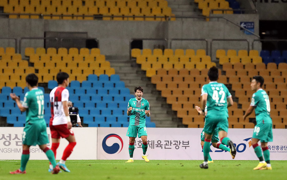 이민성 감독은 확실한 승리를 위해 후반 시작과 동시에 변화를 단행했다. 김승섭을 대신해 레안드로가 투입됐다. 이어 후반 12분에는 신상은이 빠지고 김민덕이 출전했다. 결국 대전이 쐐기골을 기록했다. 후반 23분 페널티 박스 안에서 레안드로의 패스를 받은 김인균이 각이 없는 상황에서 득점에 성공했다.