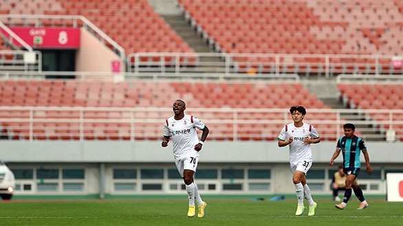 대전이 이른 시간에 선제골을 터뜨렸다. 전반 14분 레안드로의 패스를 받기 위해 침투하던 이현식이 상대 수비수의 태클에 걸려 넘어지면서 페널티킥을 얻어냈다. 키커로 나선 레안드로가 침착하게 마무리했다. 대전이 기세를 이어갔다. 전반 28분 주세종이 페널티 박스 밖에서 과감한 중거리 슈팅을 시도했지만 골대를 벗어났다.