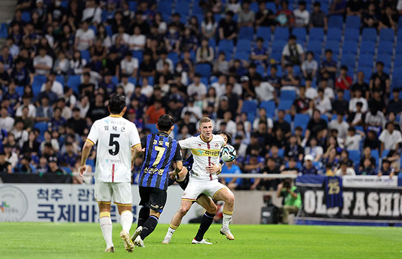 전반 초반 분위기는 대전이 주도했다. 대전은 경기 시작과 동시에 ‘신입생’ 구텍의 슈팅이 나오면서 기선을 제압했다. 이후 전반 5분 배준호가 과감한 슈팅을 시도했지만 수비벽에 걸렸다. 대전이 흐름을 이어갔다. 전반 21분 이진현의 크로스를 김현우가 헤더로 연결했지만 골문을 벗어났다. 대전에 변수가 발생했다. 전반 23분 임덕근이 부상으로 빠졌고, 이현식이 급하게 투입됐다.