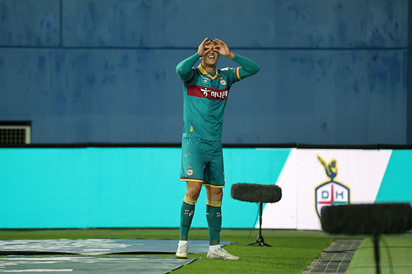 대전이 기회를 잡았다. 전반 30분 주세종이 후방에서 정교한 로빙 패스를 보냈다. 이를 받은 서영재가 곧바로 크로스를 올렸다. 전병관이 감각적으로 방향만 바꿔놓는 슈팅을 시도했지만 공은 골대를 살짝 벗어났다. 선제 실점을 내준 대전이 반격에 나섰다. 전반 38분 전병관이 페널티 박스 정면에서 과감한 중거리 슛을 날렸지만 골키퍼 정면으로 향했다.