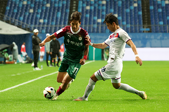 대전의 공세에도 골은 없었다. 후반 시작과 함께 대전은 노동건을 빼고 이정택을 투입했다. 그러면서 강윤성, 안톤, 아론, 이정택으로 구성된 4백이 구축됐다. 4-4-2 포메이션으로 재편됐고 배서준이 좌측 윙어로 나섰으며 박정인, 천성훈이 투톱을 이뤘다.