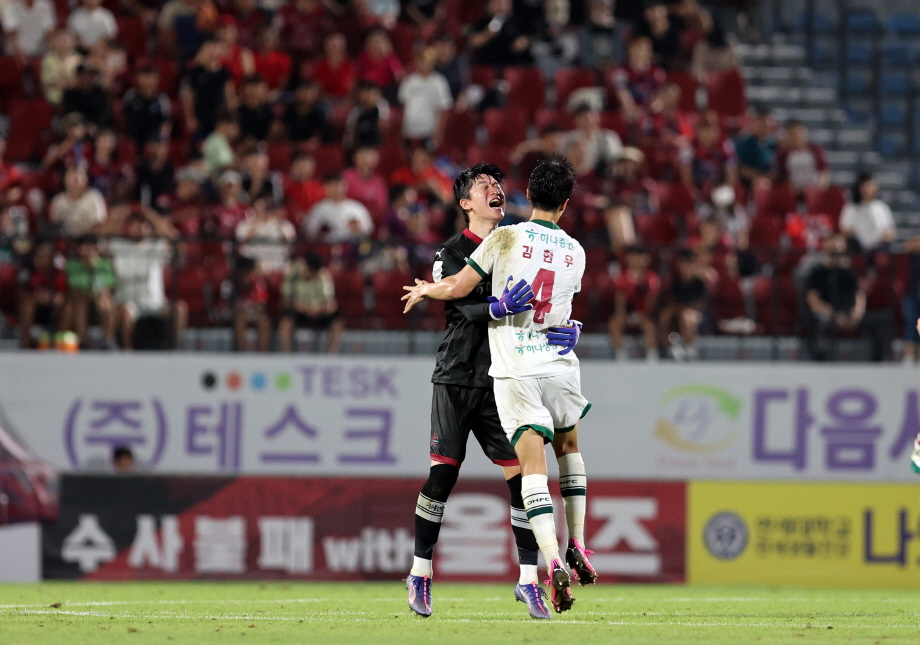 결국 대전은 동점골을 만들었다. 후반 45분 김재우 크로스를 김현우가 헤더 득점으로 연결하면서 2-2가 됐다. 후반 추가시간은 7분이었다. 후반 추가시간 2분 구텍이 슈팅을 했지만 빗나갔다. 후반 추가시간 5분 김인균 슈팅도 골문을 벗어났고 후반 추가시간 6분 윤도영 헤더는 골문을 외면했다. 경기는 2-2로 끝이 났다.