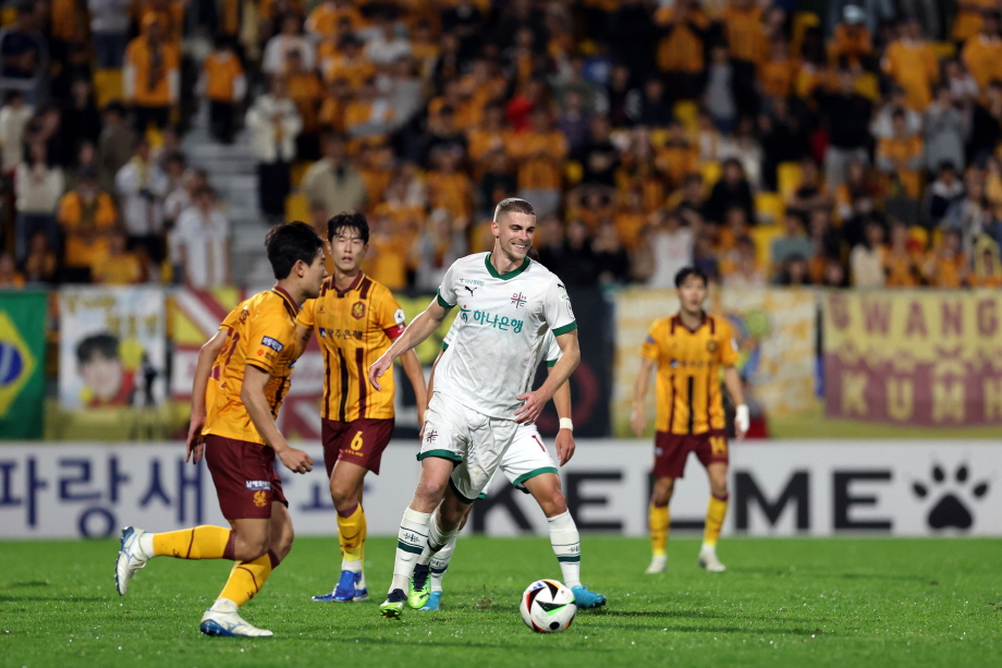 대전의 공세가 이어졌다. 전반 31분 윤도영의 중거리 슈팅은 골문 옆으로 갔다. 전반 32분 밥신의 크로스를 마사가 슈팅으로 보냈는데 김경민이 선방했다. 대전은 강하게 전방 압박을 하며 광주를 괴롭혔지만 골은 나오지 않았다. 전반은 0-0으로 종료됐다.