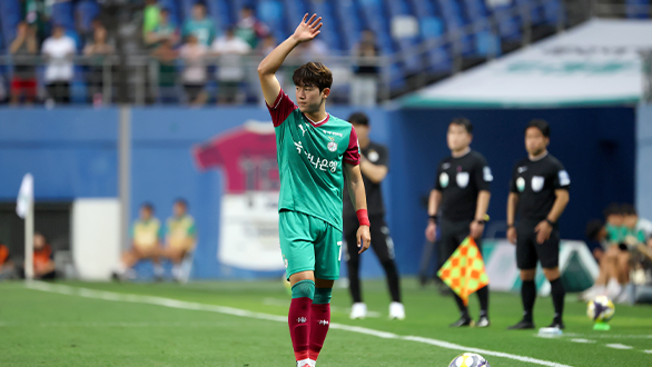 초반 김천 공세에 대전은 고전했다. 이창근 선방 속 버틴 대전은 전반 21분 프리킥 상황에서 주민규가 득점을 노렸으나 빗나가 고개를 감쌌다. 전반 32분 윤도영, 최건주를 빼고 정재희, 마사를 추가하면서 공격에 변화를 줬다. 점차 주도권을 잡았다. 전반 37분 코너킥 상황에서 임종은 헤더는 빗나갔다. 전반은 0-0으로 종료됐다.