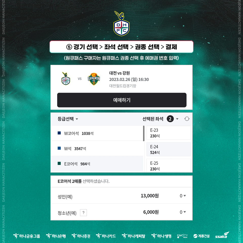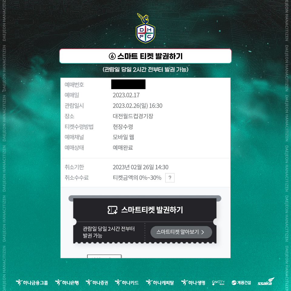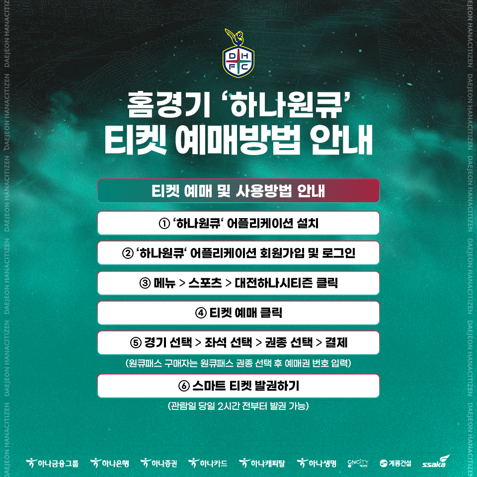홈경기 '하나원큐' 티켓 예매 방법 안내