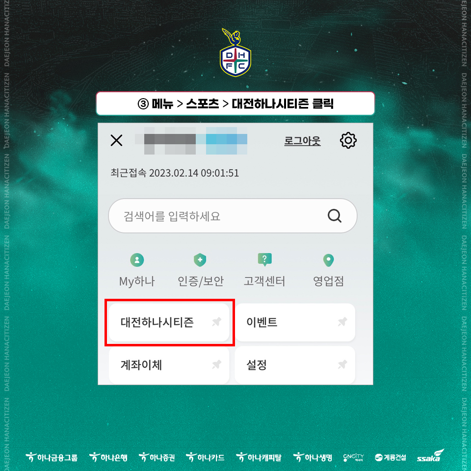③ 메뉴 > 스포츠 > 대전하나시티즌 클릭