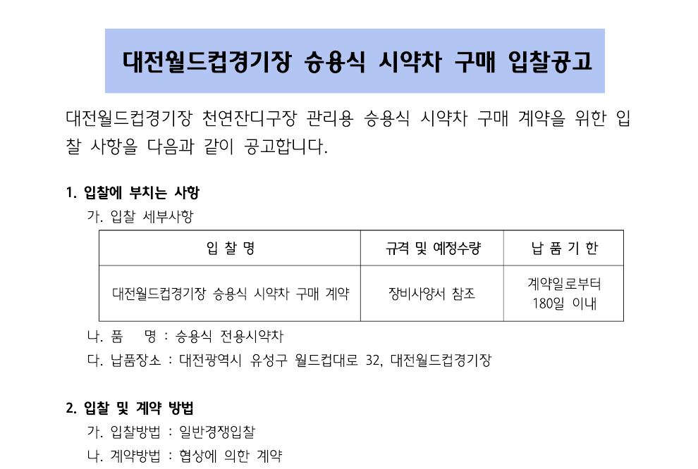 [입찰공고] 대전월드컵경기장 시약차 구매 계약의 건